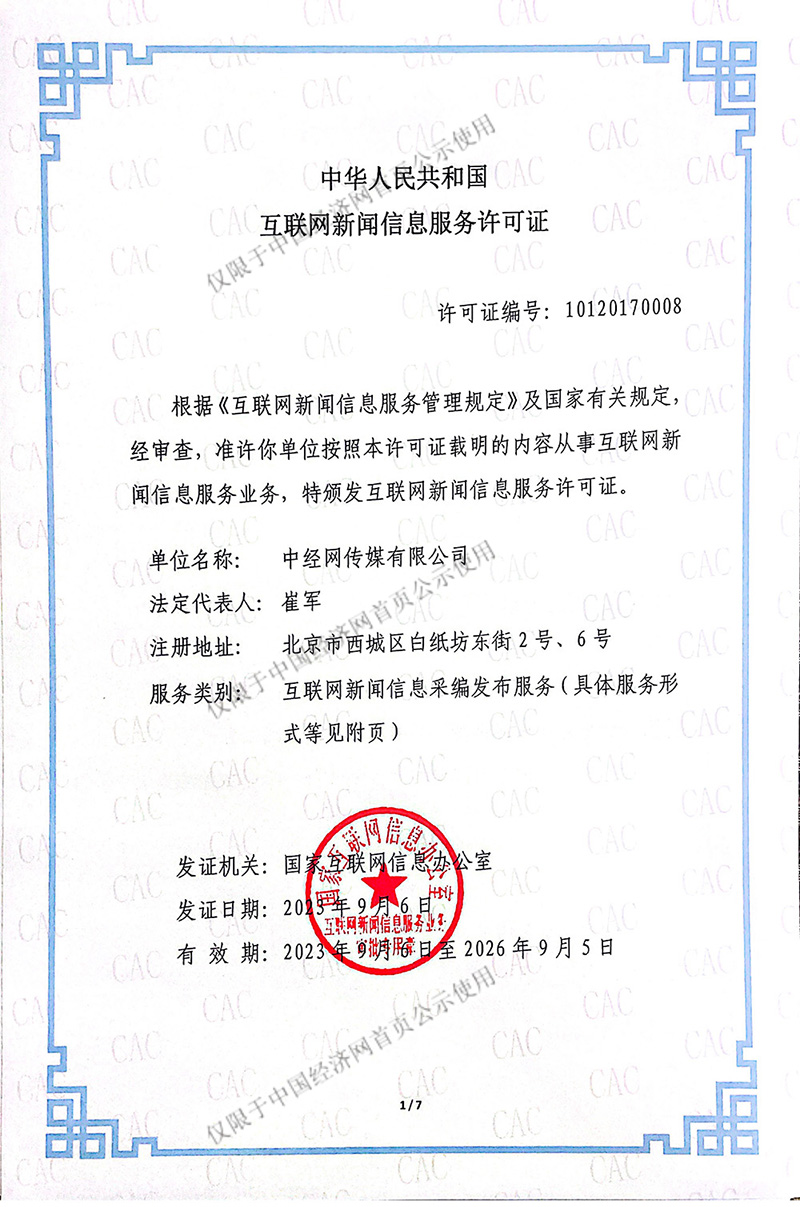 中國經濟網《互聯網新聞信息服務許可證》公示