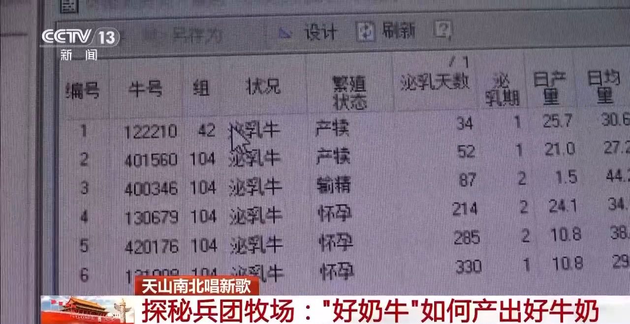 總臺央視記者 陳允濤:在新疆生產建設兵團第十二師天潤乳業北亭萬頭牧場,這塊大屏幕就是奶牛場的智能管理系統,每一頭奶牛的健康狀況都可以實時監控。