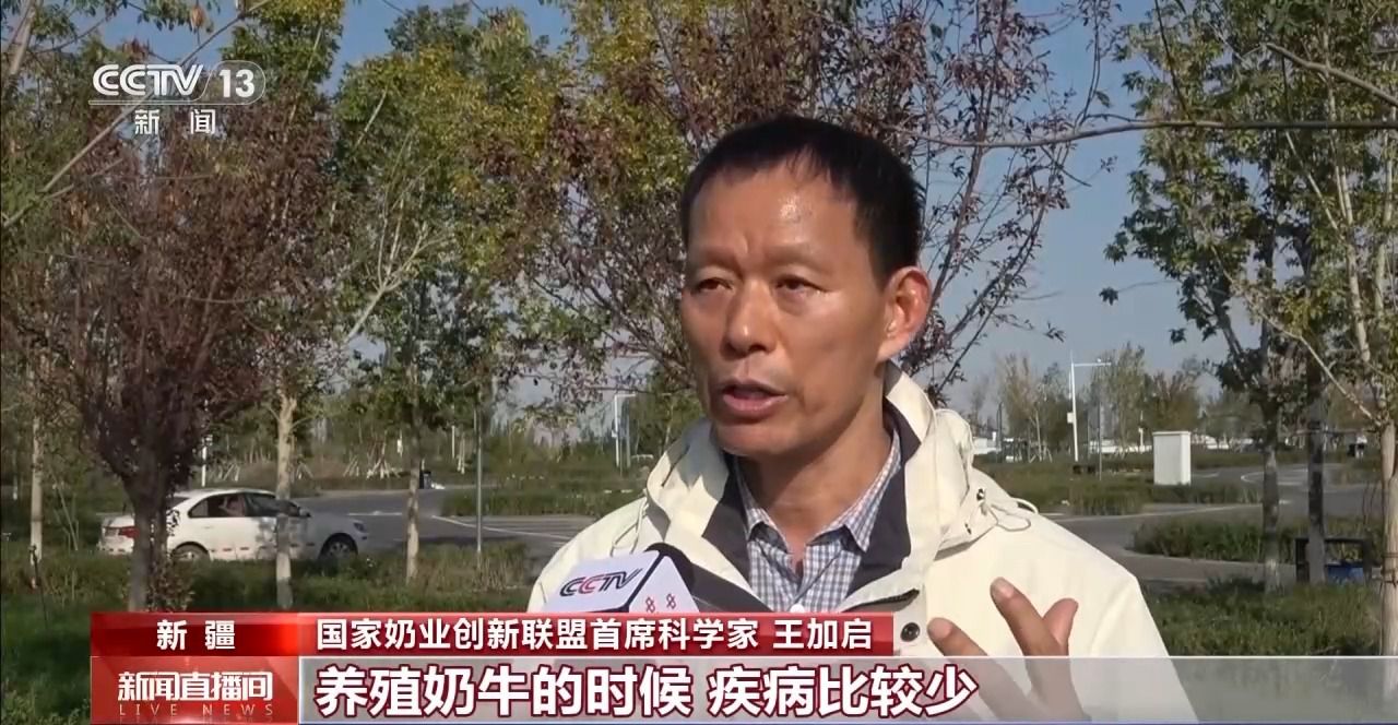 國家奶業創新聯盟首席科學家 王加啟:新疆地區相對來說比較干燥,養殖奶牛的時候,疾病比較少,鹽堿地的植物有特殊的風味,通過奶牛采食以后,能夠轉化到牛奶中,這就形成了新疆地域奶的特色品質。