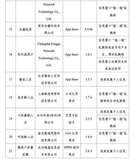 工信部稱,依據(jù)《個(gè)人信息保護(hù)法》《網(wǎng)絡(luò)安全法》《電信條例》《電信和互聯(lián)網(wǎng)用戶個(gè)人信息保護(hù)規(guī)定》等法律法規(guī),工信部持續(xù)整治APP侵害用戶權(quán)益的違規(guī)行為,在近期組織的第三方檢測機(jī)構(gòu)進(jìn)行抽查中,共發(fā)現(xiàn)27款A(yù)PP及SDK存在侵害用戶權(quán)益行為。侵權(quán)方式包括信息窗口“搖一搖”亂跳轉(zhuǎn)或誤導(dǎo)用戶滑動(dòng)亂跳轉(zhuǎn)、違規(guī)收集個(gè)人信息、APP頻繁自啟動(dòng)和關(guān)聯(lián)啟動(dòng)、信息窗口未提供關(guān)閉或退出標(biāo)識(shí)、強(qiáng)制用戶使用定向推送功能、SDK信息公示不到位以及強(qiáng)制、頻繁、過度索取權(quán)限等,涉及小米商店語音輸入法、vivo應(yīng)用商店的聽說輸入法、App Stroe的樂播投屏等。