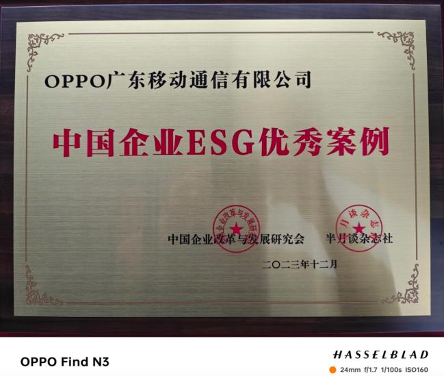ESG重塑企業價值 OPPO榮獲“2023中國企業ESG優秀案例”