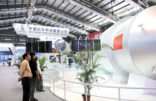 在第八屆中國國際航空航天博覽會中,中國航天科技集團公司推出代表月球探測工程最新成果的“嫦娥二號”衛星模型,代表“北斗導航”工程、直徑達7米、蔚為壯觀的天地一體衛星運行沙盤,1:1的“天宮一號”目標飛行器模型、新一代運載火箭以及代表深空探測計劃的“螢火一號”衛星模型等國家重大工程項目近100項新展品首次亮相。